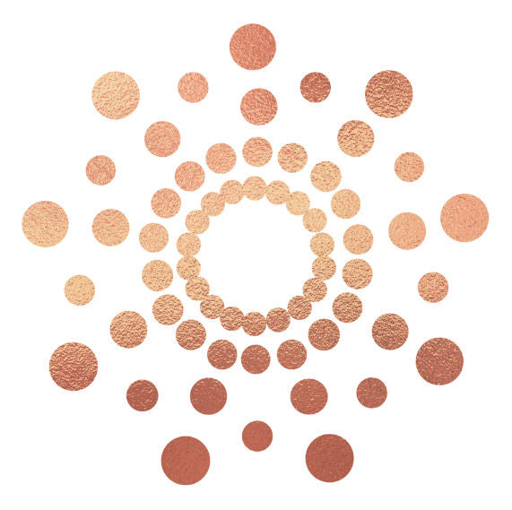 Et sett med tre midlertidige tatoveringer i forskjellige farger: gull, sølv og kobber.