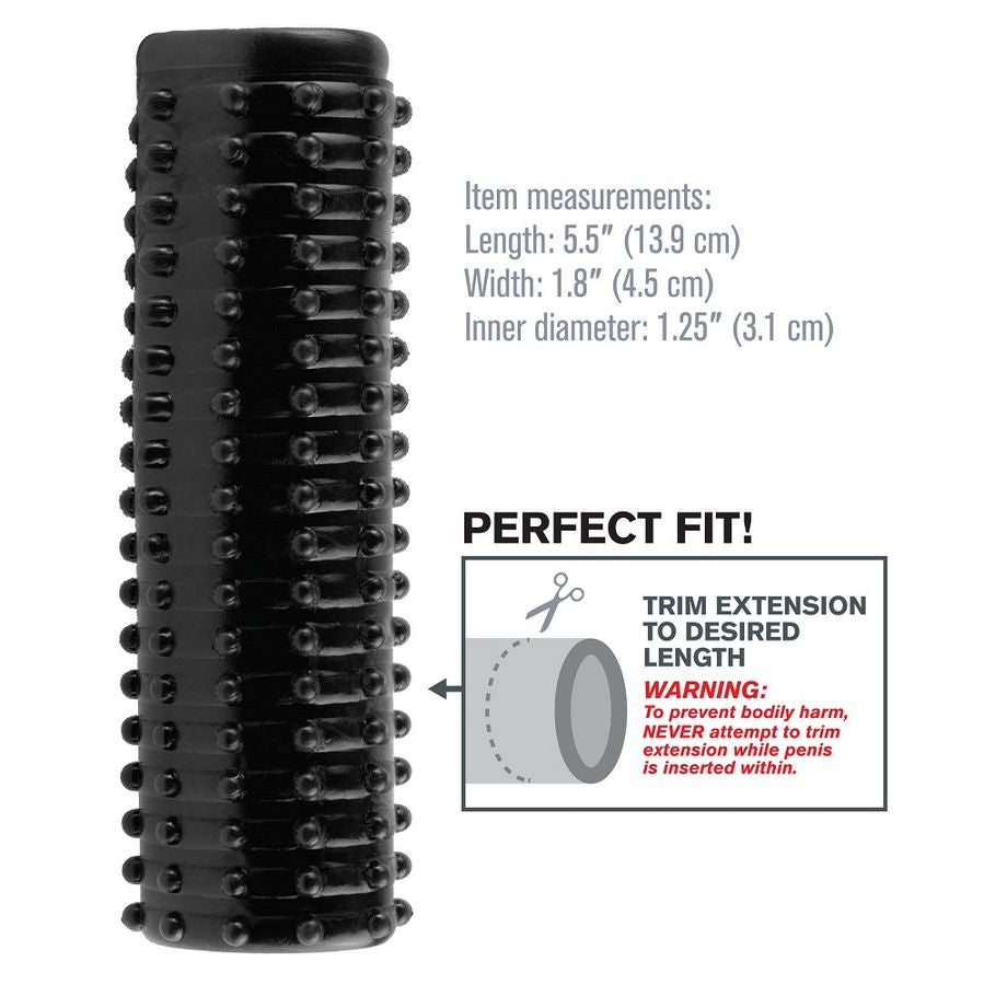 From the second you slip inside this 5.5" enhancement sleeve, you'll understand why we call it the Magic Pleasure Sleeve! This super-stretchy girth gainer is lined with hundreds of tiny ticklers on the outside, delivering thrilling sensations and satisfying thickness to your partner. The open-ended head allows you to feel every sensation and still enjoy the natural touch of your lover. Turn the sleeve inside out and use it as an incredible solo stroker! Trim the sleeve for a perfect fit and the pleasure possibilities are endless!