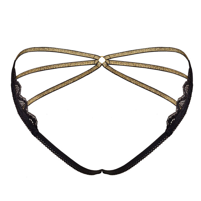 Unique and extraordinary black panties are the embodiment of femininity, sex appeal and sensuality. The non-obvious back, which is a combination of subtle lace decoration and expressive straps that emphasize and enhance the buttocks, gives this model character and distinguishes it from other classic options. Panty Muled is also a balance between the delicacy of lace and its black, dark shade, which is also broken to some extent by shiny stripes.